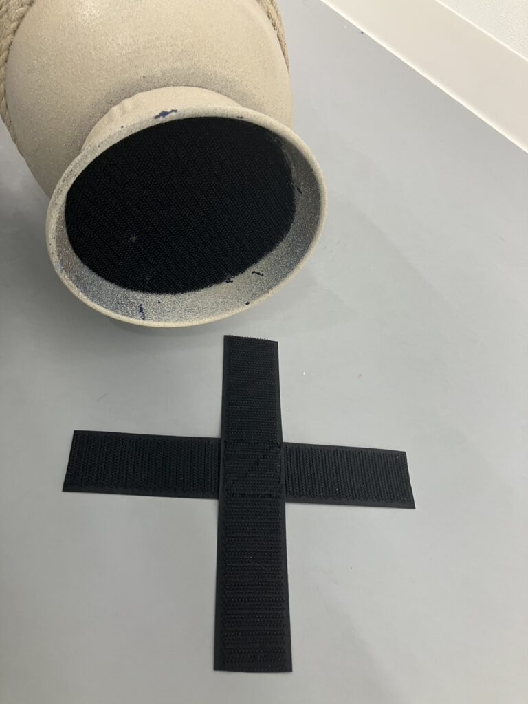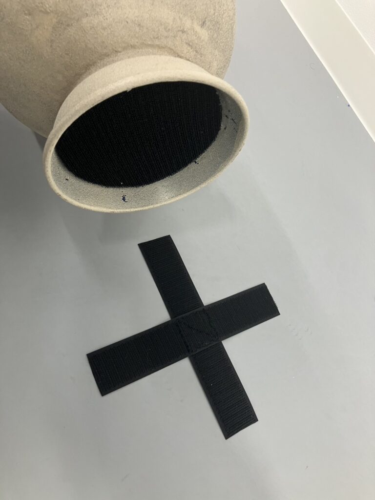 | 備考 | 壺01に比べ、雫型のように下が膨らんでいる形です。 プラスチックと木と紙粘土で出来ていますので万が一落とした時に金属音がしたり、割れたりしません。 壺01より約210グラム重いので頭に乗せて踊る場合は、手を添える等振付けに工夫が必要です。 バッテンのマジックテープをピン等で頭に留め、壺の底のマジックテープをくっ付けることである程度の固定・着脱ができます。 |